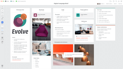 Milanote helps you share a brief with an agency or client to answer questions and create a visual reference point so you can get the ball rolling on your digital campaign. Read our guide on writing inspiring creative briefs to master this skill.