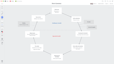 This template uses the circular form to help you map out where your character sets off, overcomes adversity, and returns home as the hero. It's an easy way to troubleshoot plot points and ensure you've got the sequence of events just right.