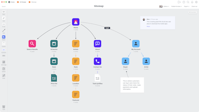 A site map in Milanote doesn't need to be a simple flat structure. Milanote allows you connect lines, add text, images, videos and links, and place boards within boards to create a truly dynamic 'map' of your website.