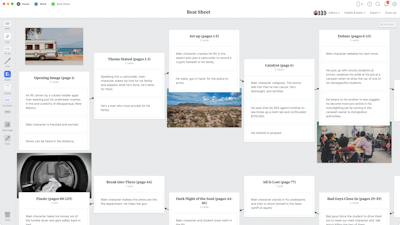 Milanote's drag-and-drop interface allows you to arrange columns, notes, lines, links, files, videos and tasks on an infinite virtual canvas. When you're finished your beat sheet, everything can be shared with your team for further collaboration and ideas.