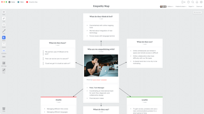 Start by putting your customer at the centre of the diagram. Then use this template to write down how your customer thinks & feels about your product or service, how they see their environment, what they are saying about your product, and the things they're hearing.