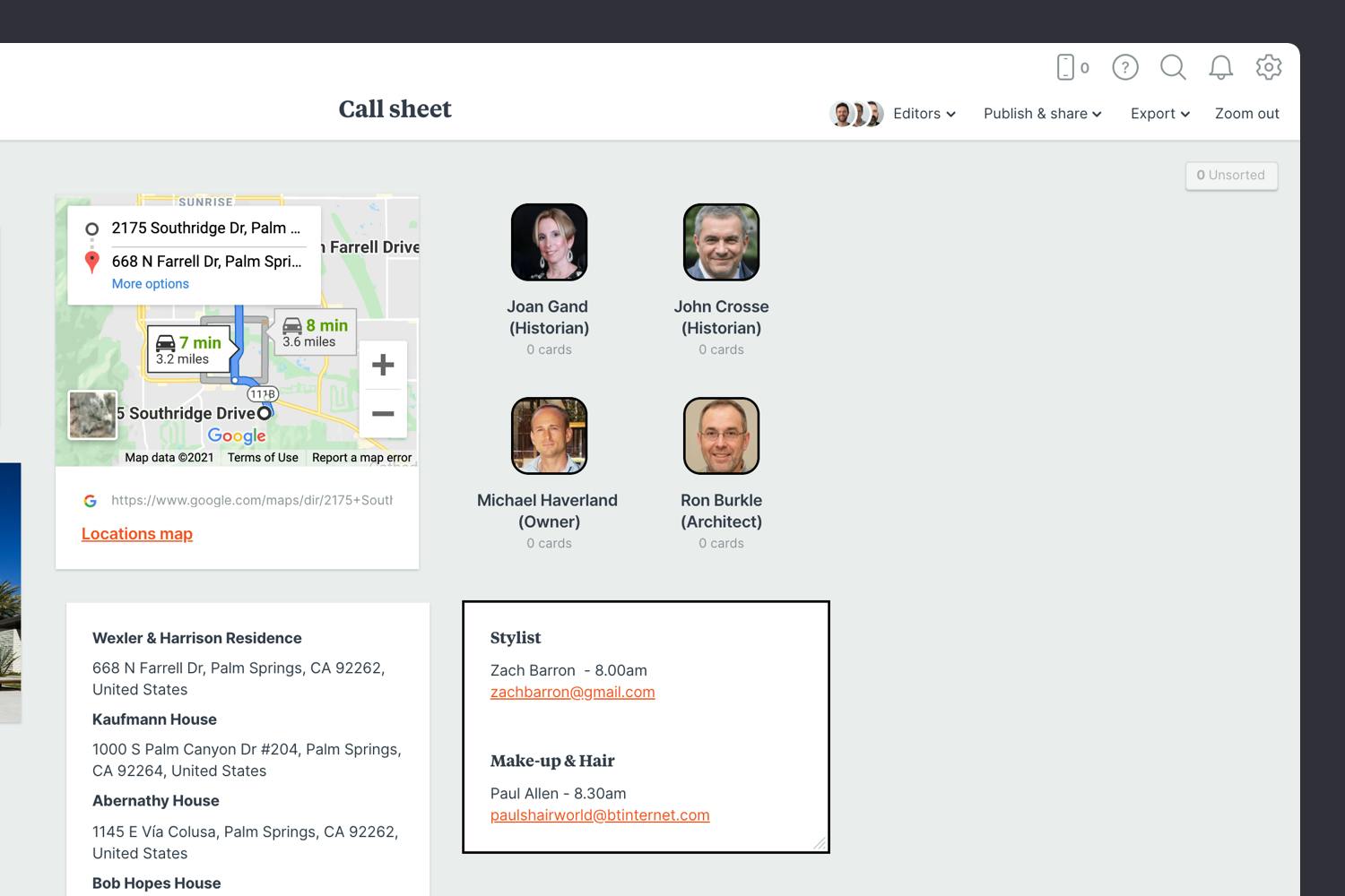 Once you have everything you need, it's time to organize your call sheet so it's easy to scan. Then share it with your team so everyone can start preparing for the shoot.