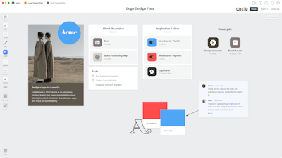 This template is the perfect place to start your next logo design project. It includes beautiful, easy to use boards for all the key parts. From writing an inspiring brief, brainstorming and sketching ideas, collecting inspiration and presenting your design concepts.