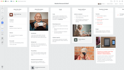 A typical brief should include background information, objectives of the research, details on the product/service being studied, who the target market is, key dates, budget information, and access to any past research. Read our guide on writing inspiring creative briefs to learn more.