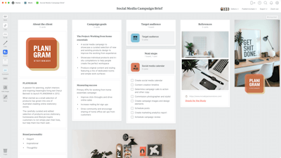 Milanote helps you share the brief with a client or team and create a point of reference for everyone involved in the campaign. Read our guide on writing inspiring creative briefs to master this skill.