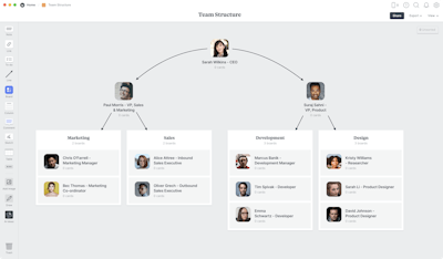 This team structure template is a great way to demonstrate reporting relationships, define responsibilities, and introduce new people to the wider organization.