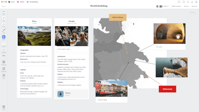 This world-building template offers a great way to map out a fictional world. Define your landscape, geology, urban, and natural features.