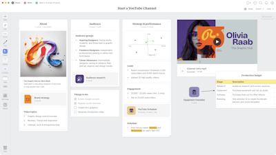 Whether you’re a beginner or refining your approach to Youtube, this template provides the structure you need to start and grow your channel with confidence. Milanote lets you mix notes, images, video, tasks and more to create a solid strategy and start growing your YouTube channel.